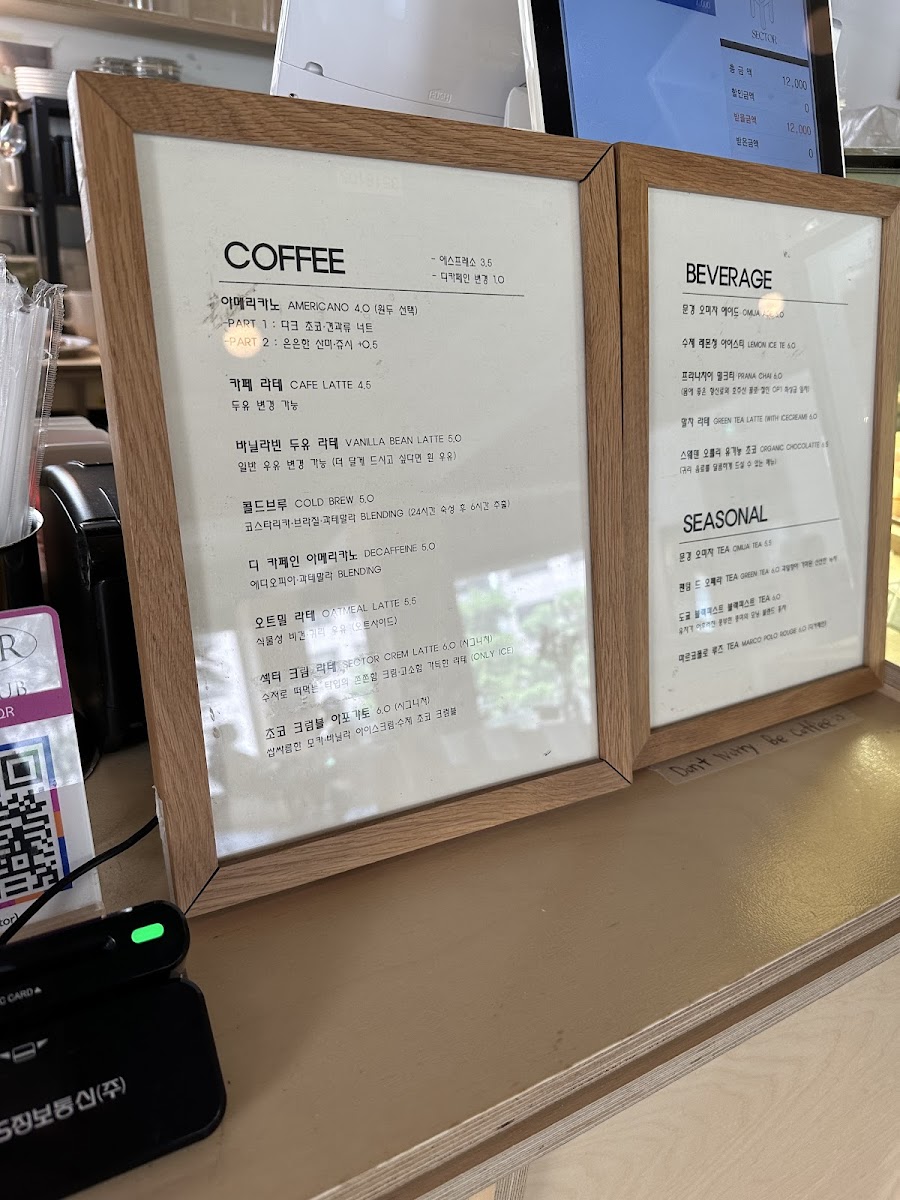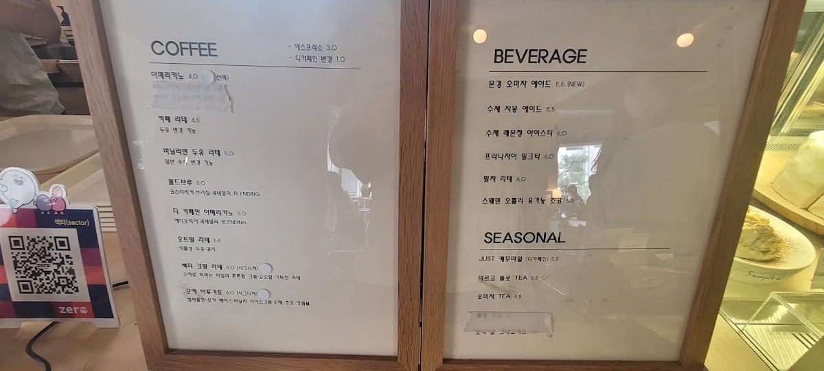 Sector Coffee Roasters Chungmuro Menu